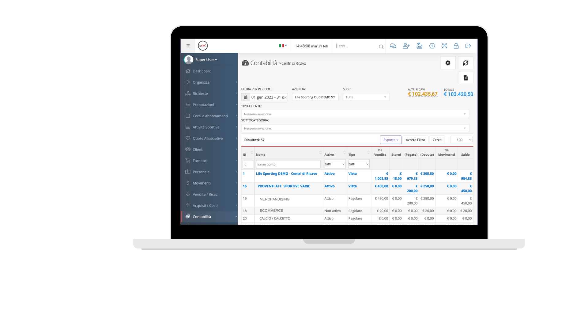 Con un intero modulo dedicato alla contabilità, Wansport supporta gli amministratori del club nel processo di registrazione delle movimentazioni contabili. Si può generare la prima nota giornaliera, tenere costantemente traccia dei registri contabili ed ottenere dati e rendiconti utili alla definizione del bilancio.